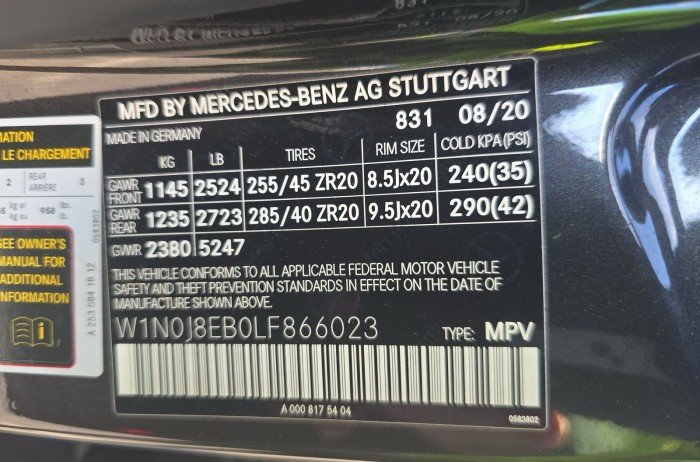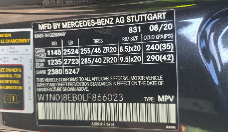 VIN #W1N0J8EB0LF866023