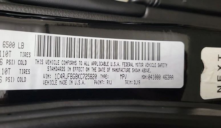 VIN #1C4RJFBG8KC725820